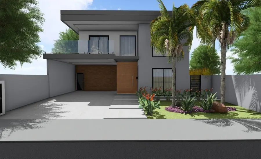 O Projeto Arquitetônico foi planejado a partir de uma leitura cuidadosa do lote, priorizando circulação inteligente, integração visual e equilíbrio entre áreas sociais e íntimas. As fachadas, marcadas por volumetria limpa e proporções precisas, reforçam a linguagem contemporânea e atemporal que guia o conceito da residência.